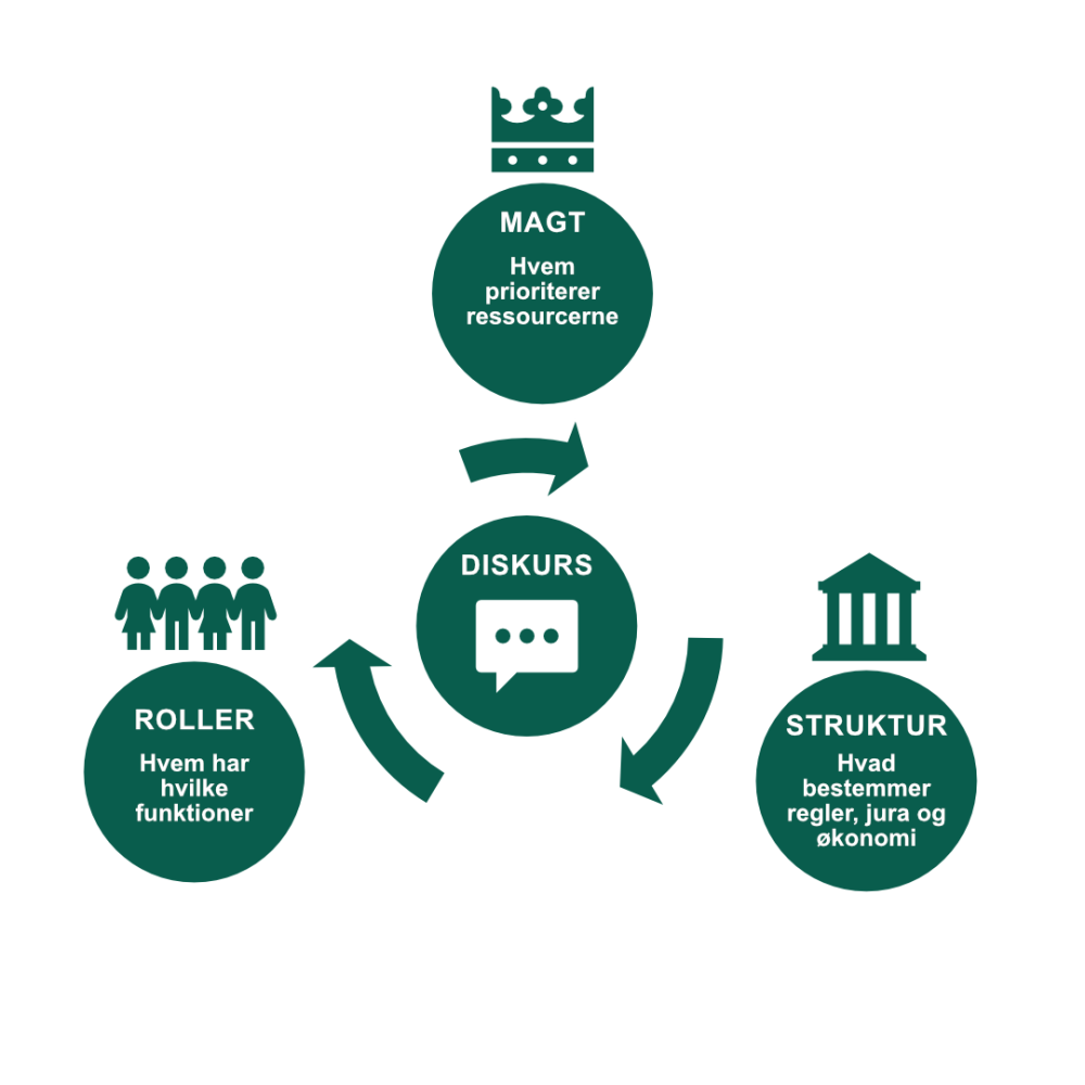 Dem der evner at styre diskursen, altså definere hvor hvordan vi alle kan blive enige om hvad der virkeligt, de evner også at definere hvem der har magt til at prioritere beslutninger, hvem der skal have bestemte roller og hvordan de roller skal forbindes med hinanden.